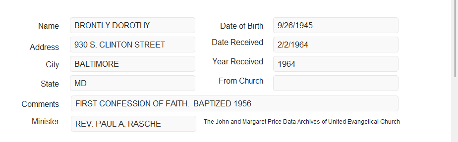 | 1054 | BRONTLY DOROTHY | 1964 | Link |