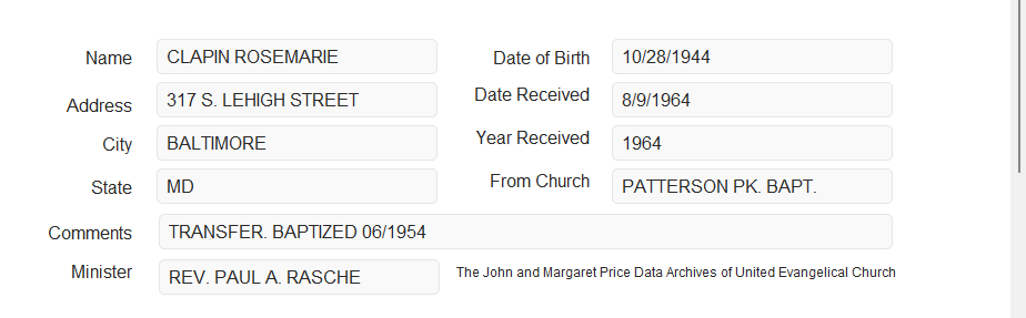 | 1080 | CLAPIN ROSEMARIE | 1964 | Link |
