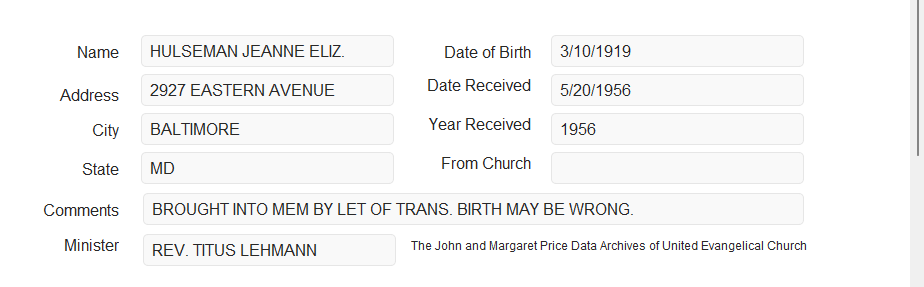 | 1516 | WESTERMAN EDITH | 1953 | Link |